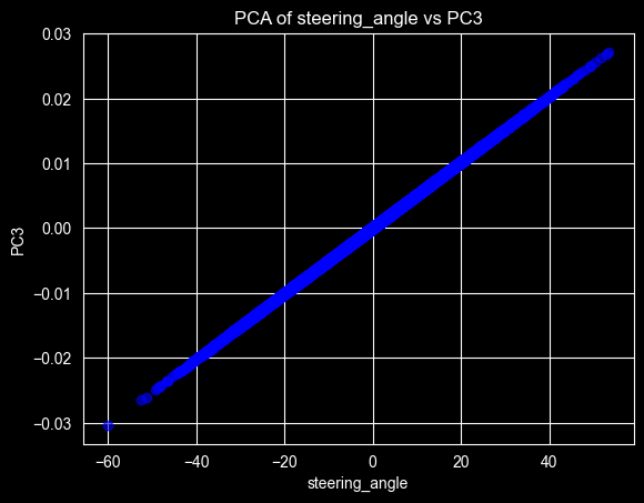 The fact that we have a perfect line in the relationship between the steering_angle and the PC3, means that this is the only behavior that can be grouped on this component.