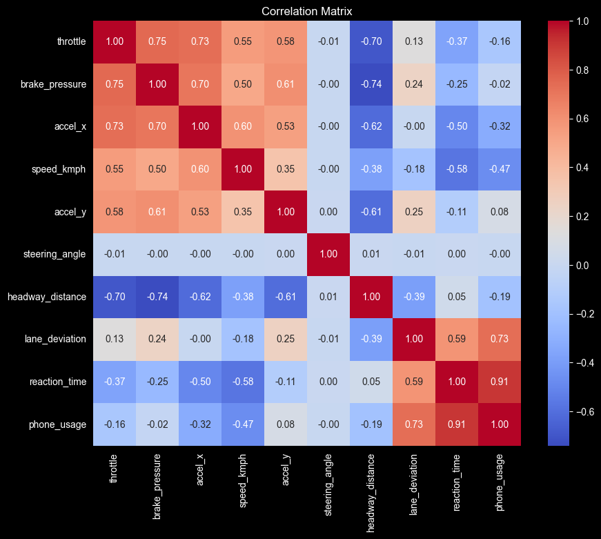 df_telematics_analysis = df_telematics.drop(columns=['behavior_label'])It was synthetically generated, taken from kaggle vehicle telemetry for driver behavior. Originally the dataset has a target label, but we are going to remove it and explore the data without those labels. The idea is to see if we can identify and clasify drivers behaviors based on their telemetry data.
