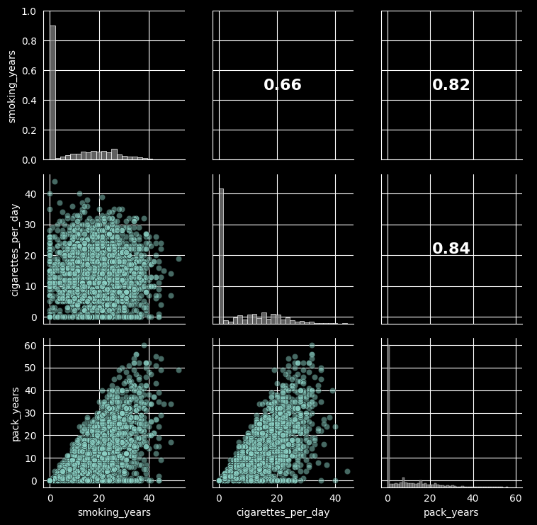Let’s take a closer look at the relationships between smoking-related variables, as they are typically highly correlated.